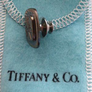 Tiffany Sterling silver tie or lapel pin with the "Men's Wearhouse" logo. 3 grams, .5 inch. Just needs a cleaning.