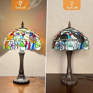 Tiffany glass features: we recommended use incandescent bulb(Max.E26/60W),LED 2700k warm white lights or CFL warm white bulbs (bulbs are not included),different bulbs get different looking, all of the colors look vibrant when light on.