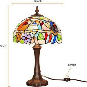 Tiffany lamp size: lampshade 12 inches wide and 20 inches height, the polyresin base finished with antique bronze, its size is perfect and will bring a gorgeous colors and personality into any indoors space