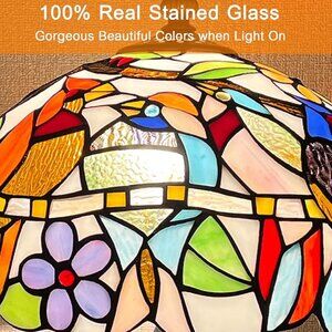 Tiffany Style Lamp Handmade Stained Glass Table Lamp Cardinal Birds Style 20"