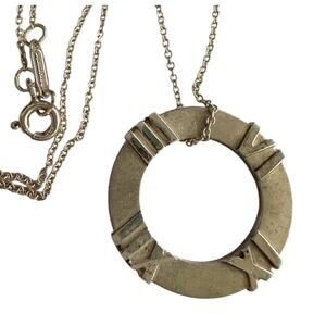 Beautiful Tiffany and Company Atlas circle pendant necklace. Roman numerals (shine finish) on matte finish flat circle. 16" sterling silver frame.