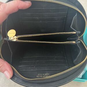 Authentic Tiffany & Co. Half Moon Black Leather Clutch/Wristlet. Super buttery soft leather. Gold tone zipper and pull. 8 card slots. Interior zip pocket Excellent Condition. Minor fingerprints on leather from storage.