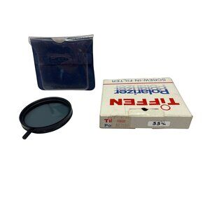 This vintage Tiffen 55mm Polarizer Screw-In Filter comes with its original box and protective case. Enhance your photography with this timeless accessory, designed to reduce glare and enhance color saturation. A must-have for photography enthusiasts seeking an authentic vintage touch to their equipment collection.