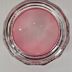 This vintage glass finger bowl is the King's Crown pattern, featuring a cranberry flashed top and bottom on clear glass. The term flashed refers to a thin layer of colored glass over a colorless base. A technique used to create the look of more expensive cranberry glass at a lower cost. This pattern was produced by Tiffin Franciscan. And similar pieces were also made by Indiana Glass and Colony Glass. The bowls were typically produced from the 1943 to 1965. On the clear base section are oval recessed patterns which are the thumbprints. This piece measures 4 inches wide by 2.25 inches high. In order to preserve the Ruby flashing on this vintage piece, hand washing is recommended. In very nice vintage condition. Non smoking pet free home.