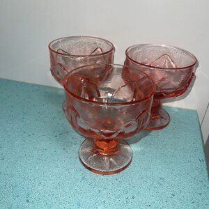 Tiffin Franciscan Vintage Champagne Glass Set Of 3 Pink Lotus Flower Sherbet