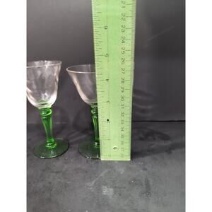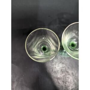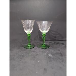 Tiffin Green Stem Cordials Festoon Optic Wine Uranium Vintage Stemware, Set of 2