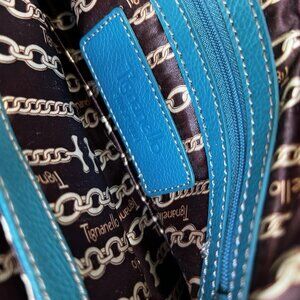 Tiganello Blue Teal Pebbled Leather Slouchy Purse Bag