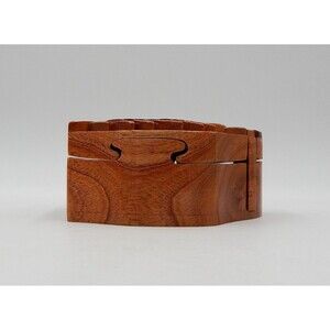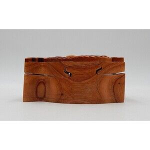 Tiger Carved Wood Puzzle Round Box Wooden Intarsia Keepsake Trinket Hidden