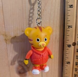 Cute tiger character keychain in orange and yellow. Perfect for bags or keys.