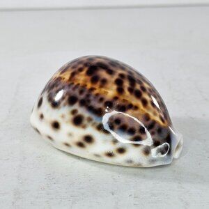 Tiger Cowrie Sea Shell Glossy Brown & White Spotted Ocean Decor