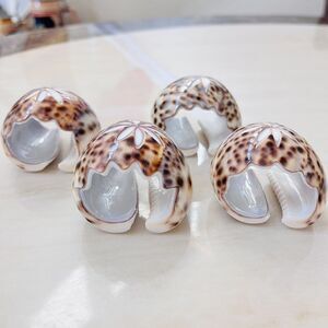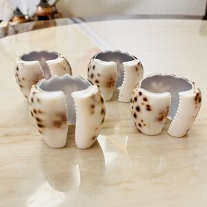 Tiger Cowrie Spotted Shell Napkin Rings Set Of 4 Coastal Beach Serving Table
