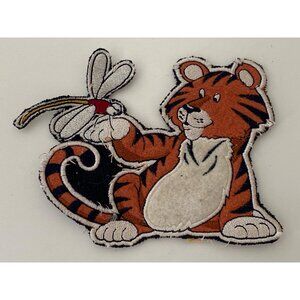 Vintage sew-on novelty patches featuring a tiger, dragonfly, elephant, and heart. Each patch is beautifully embroidered and easy to apply to any fabric.