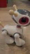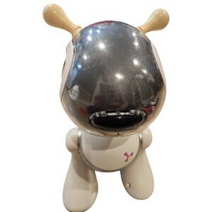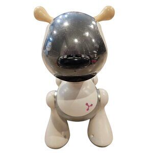 Preowned toy, tested and working (please see included video). There is various damage in spots- the rubber ear/tail pieces are breaking off, there's scuffing on the face, etc. About 10" tall. Batteries or bone accessory NOT included.