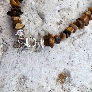 Tiger Eye Bead Chip Necklace With 925 Sterling Silver Clasp