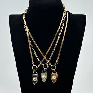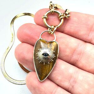 Tiger Eye Gemstone Heart Evil Eye Pendant Necklace 18K Gold Plated Chain 19 Inch