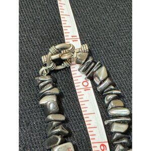 This elegant Tiger Eye & Hematite Beaded Necklace features a striking pendant, showcasing natural stone beauty.