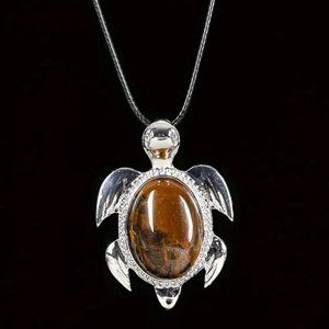 Tiger Eye Natural Gemstone Turtle Pendant Necklace Healing Gemstone Pendant