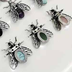 Tiger Eye Stone Bee Brooch Pendant Necklace Healing Gemstone Pendant