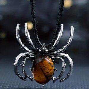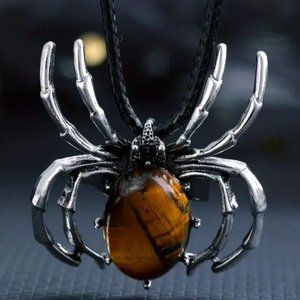 Tiger Eye Stone Spider Brooch Pendant Necklace Healing Gemstone Pendant