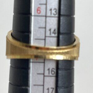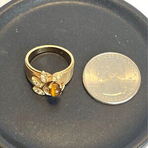 Tiger Eye18K Gold Plated Ring Ribbed Band Stone Crystal Accents Sz 6.75 Vintage