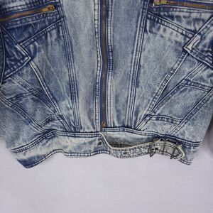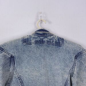 Tiger Fox Jacket Womens M Denim Acid Wash Full Zip Cropped Full Zip Y2K 90s VTG