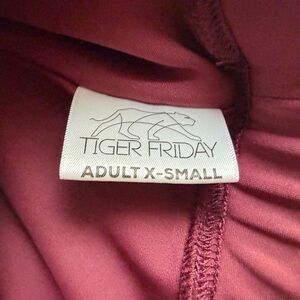 Tiger Friday one-shoulder dance top with a subtle ruffle detail. Smooth maroon fabric offers a flattering, streamlined fit. Comfortable stretch designed for all-day wear.