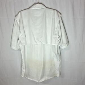 Upgrade your wardrobe with this stylish Tiger Hill men's button-down shirt. Featuring a solid pattern, short sleeves, and a collared neckline, this shirt is perfect for any casual occasion. The button-down collar style and embroidered accents add a touch of sophistication to the shirt, making it suitable for both vintage and modern styles. Made from high-quality cotton material, this shirt is comfortable and durable. The regular fit and size Large make it suitable for most men, while the white color and button closure add a classic touch. Don't miss out on this must-have addition to your collection.