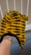Adorable tiger knit beanie made in Nepal. Features playful ears and a cute face. The inside is lined and the straps will keep it in place. Lovely hand made hat for a kiddo who loves tiger! House is pet free and smoke free.