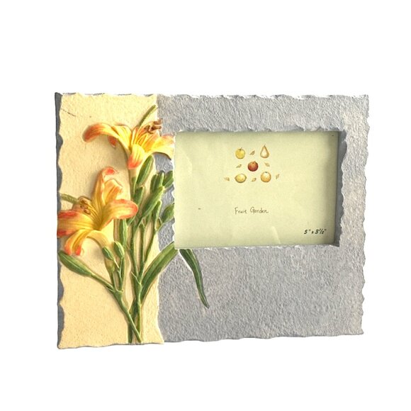 Tiger Lily Frame 3D Resin Picture Frame Orange Yellow Blue Trim Live Edge 5x3.5