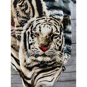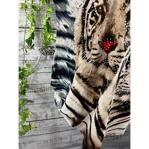 Tiger Mates Tunic Top Medium Large Brown Gray Silk Safari Africa Jungle Disney