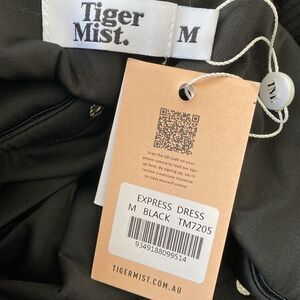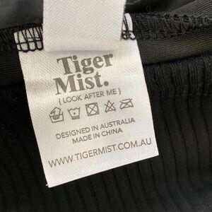 This black bodycon mini dress is made from a ribbed fabric and features snap off details so that you can have a peekaboo effect of completely undo and wear as a crop top/skirt set. Tiger Mist is I.AM.GIA’s sister label.