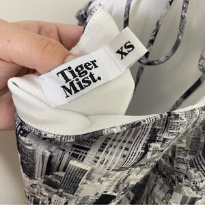 Tiger Mist Black White Building Skyline Keeli Bodycon Lace Back Dress Size XS