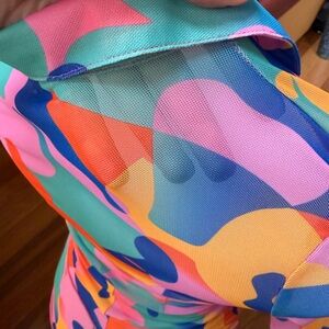 Vibrant long sleeve top & skirt set with abstract print.