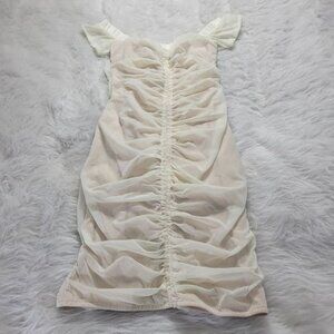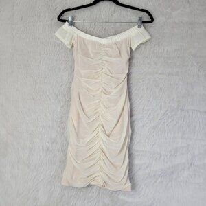 Tiger Mist Cream Off The Shoulder Ruched Mini Dress Small