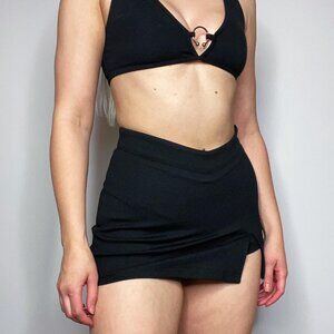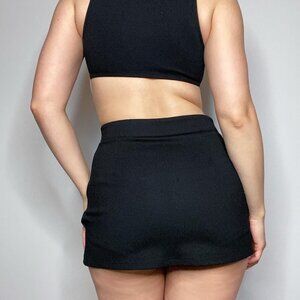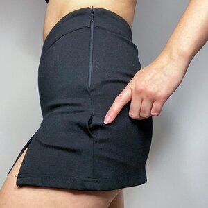 The most flattering, cutie mini skort I've ever had! High waisted v-cut waistline with some stretch. Invisible zipper closure on the side. NOTE: just under the zipper there is a 1 1/2 inch hole, pictured. I'd keep this if it weren't for my wide hips- I'm inclined to believe they're the reason for the hole. Size XS, measurements below! Size no longer avail. from Tiger Mist!
