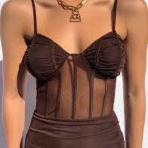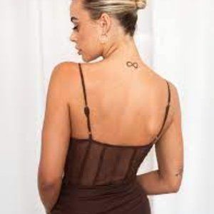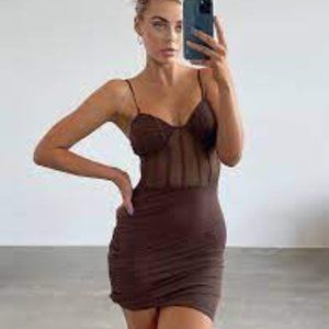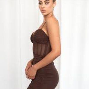 Completely new, never been work before Tiger Mist Gaia Chocolate Dress, Size M with corset detailing. Perfect for a night out or a party!