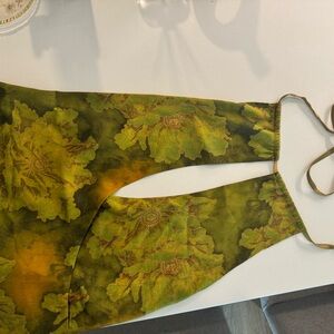 Step out in style with this stunning olive green halter dress. Perfect for any occasion, this dress features a flattering silhouette and a unique floral pattern. Ideal for making a statement.