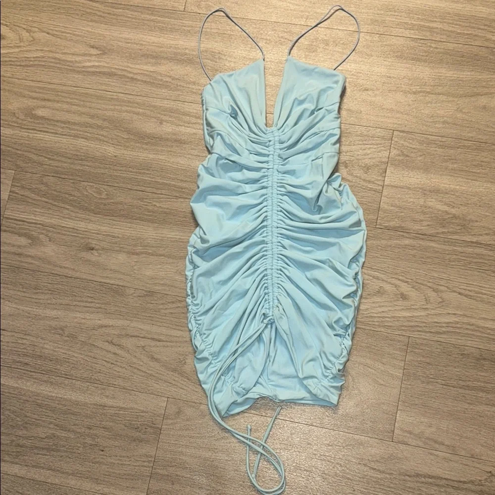 Mini dress from Tiger Mist. Worn once. Excellent condition. Has slits in the front of the dress. Middle bottom has ties to make dress tighter or looser. Size small.