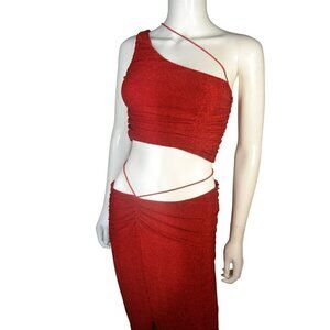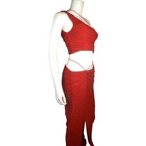 Tiger Mist Red One-Shoulder Cut-Out Maxi Dress - Strappy Ruched Design-LT3042