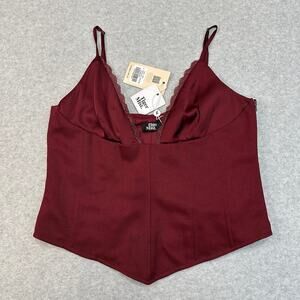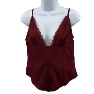 Tiger Mist Taos Cami Top XL Burgundy Lace Trim V-Neck Adjustable Straps Side Zip