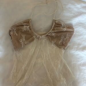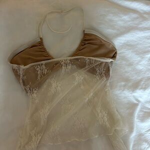 Tiger Mist white mesh/lace top in size small. I cut the tag off since it was itchy!