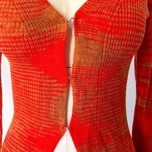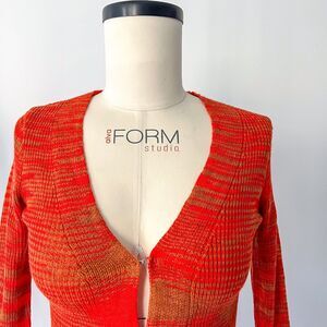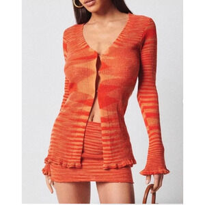 Tiger Mist Womens Size S Cardigan Sweater Red Orange Brown Aztec Ruffled Y2K