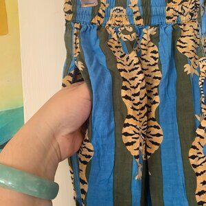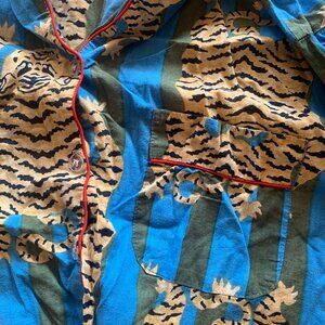 Tiger Print Cotton PJ Set, Woman Comfortable Ultra-Soft Night Wear Colorful Blue