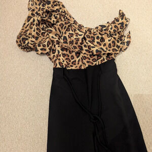 Tiger Print Wide Leg One Shoulder Ruffle Jumpsuit -BNWOT size S/M