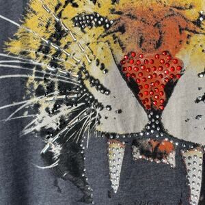 Tiger Tie-Front Tank Top Gray Bejeweled Rhinestones Gems Body Central