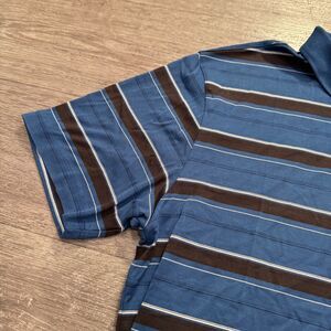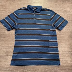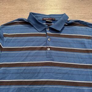 Tiger Woods Polo Shirt Mens Medium Blue Golf Performance Stretch Golfer Stripe