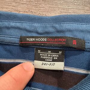 Tiger Woods Polo Shirt Mens Medium Blue Golf Performance‎ Stretch Golfer Stripe