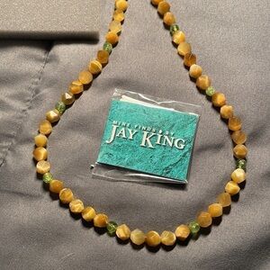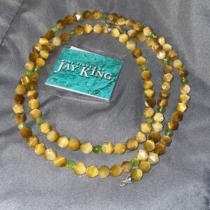 Jay King Golden Tigers Eye with Peridot - 36 inch Necklace with sterling silver clasp