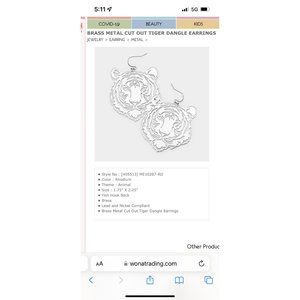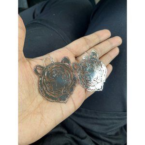 • Brass Metal Cut Out Tiger Dangle Earrings