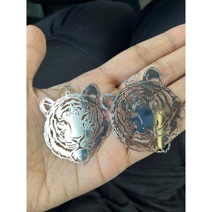 Tiger mascot earrings, auburn tigers , go tigers, cheetah earrings silver animal